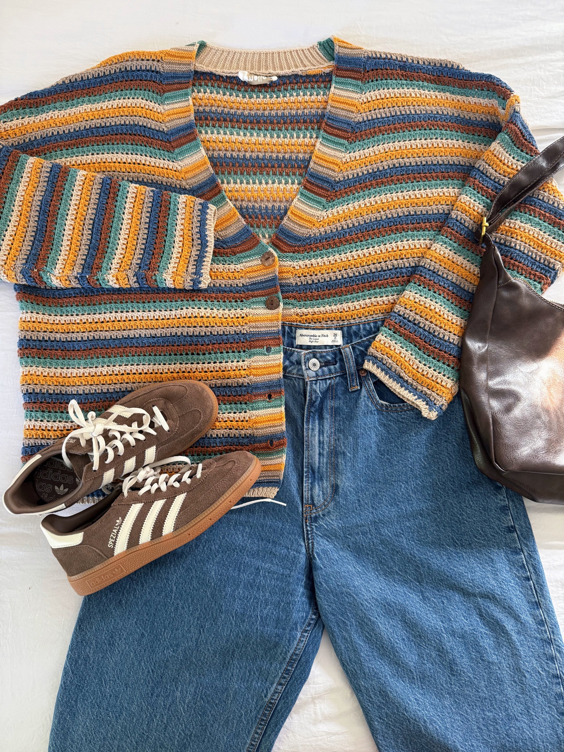 Oversized Multicolor Striped Button Down Cardigan! Fits Oversized. Lily is 5'7" and is wearing a Size Medium.